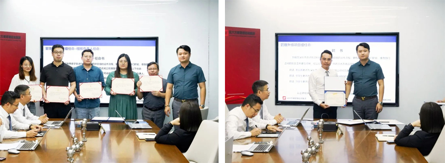 會上,李總為項目老師頒發了授權書,為各項目小組負責人頒發了任命書,共同宣誓投身變革。