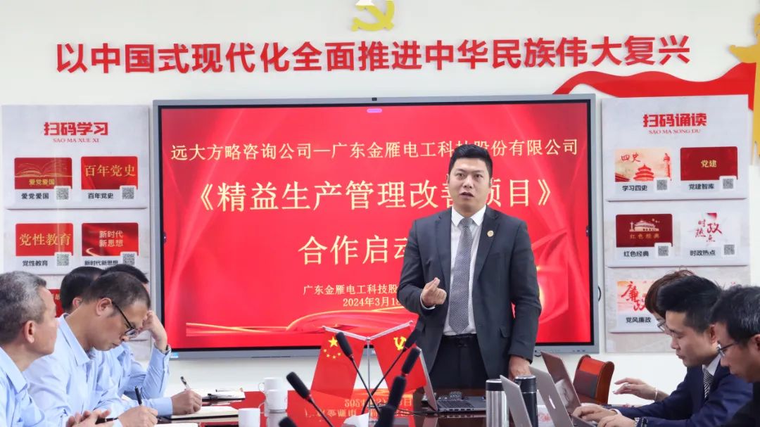 全員參與,提質增效,近日,廣東金雁工業集團有限公司(以下簡稱“金雁工業集團”)攜手遠大方略開展合作,旗下廣東金雁電工科技股份有限公司(以下簡稱“金雁電工”)開展實施《精益生產管理》咨詢項目,全面開啟精益變革,去除一切不增值的過程,消除一切過程中的浪費,以更低的成本生產質量更優的產品,實現客戶利益和企業效益更大化。