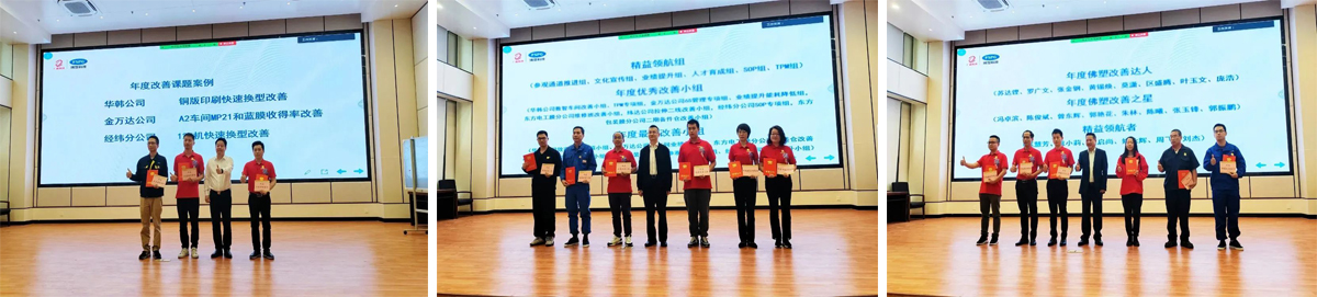 表彰先進(jìn)樹標(biāo)桿,凝心聚力謀新篇。會(huì)議上對(duì)在一期精益管理項(xiàng)目中表現(xiàn)優(yōu)異的團(tuán)隊(duì)及個(gè)人進(jìn)行了表彰,鼓勵(lì)全體佛塑精益人再接再厲,精益求精,不斷前進(jìn)。